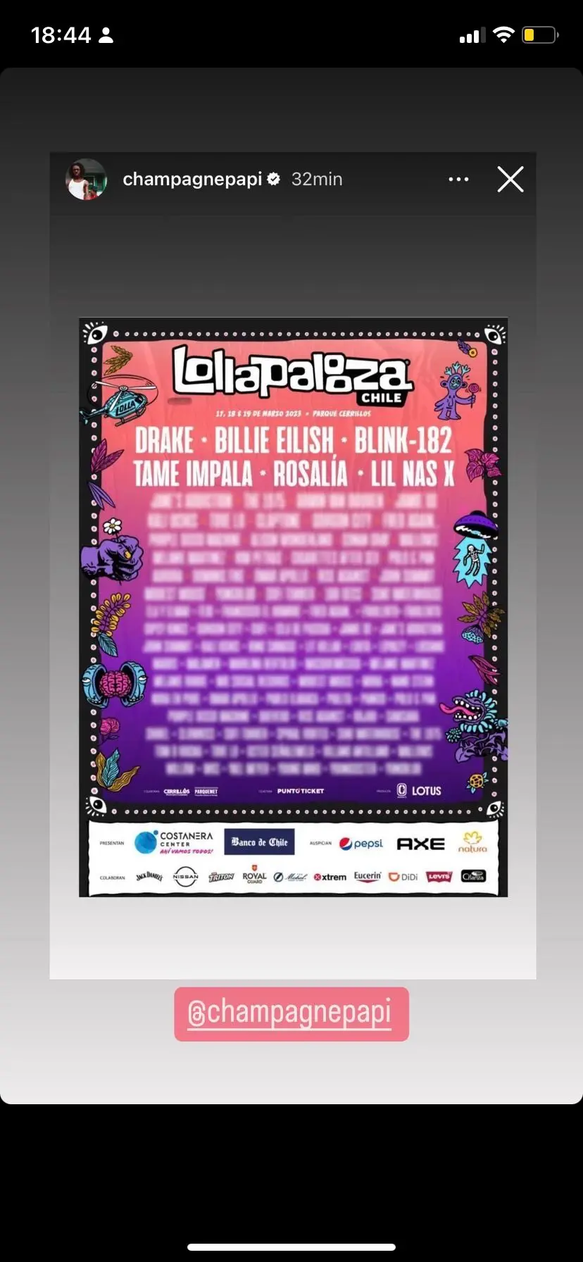 Entre os nomes que foram excluídos, artistas como Melanie Martinez, Tove Lo, Pitty e Ludmilla foram citados nas redes sociais. "Drake tirando o nome das outras atrações do Lolla. Te manca, meu filho", disse.