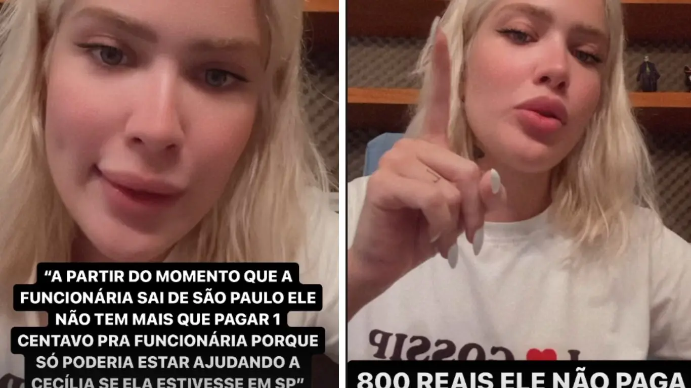 "A partir do momento que a funcionária sai de São Paulo ele não tem mais que pagar 1 centavo pra funcionária porque só poderia estar ajudando se a Cecília estivesse em SP", escreveu a influenciadora, reproduzindo o que o contador de Éder teria usado como justificativa para demitir a funcionária.