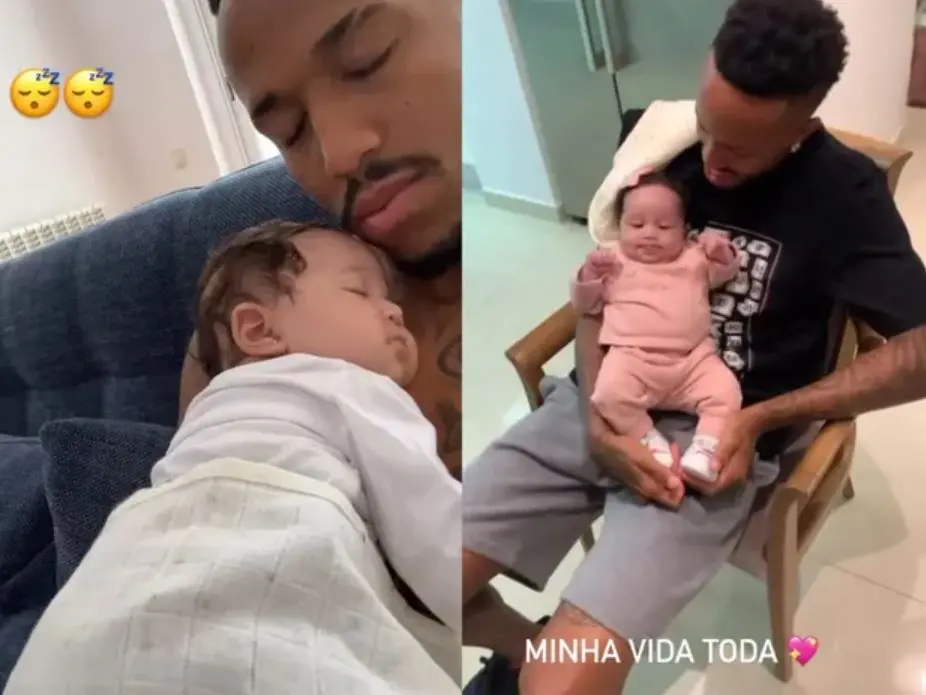 Nesta quinta-feira (15), por meio dos Stories do Instagram, Militão compartilhou uma foto e um vídeo da bebê dormindo em seu colo e escreveu: “Minha vida toda”.