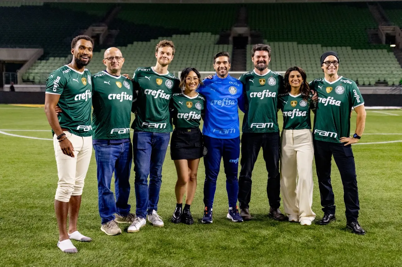 "Alguém arranja uma cidadania brasileira para o elenco de The Boys?", brincou o perfil oficial da Amazon Prime Video Brasil. No campo, todos posaram trajados com a camisa do Palmeiras.