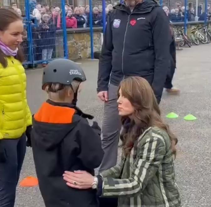 Em visita à Escócia, Kate Middleton surpreende ao socorrer menino que cai de bicicleta