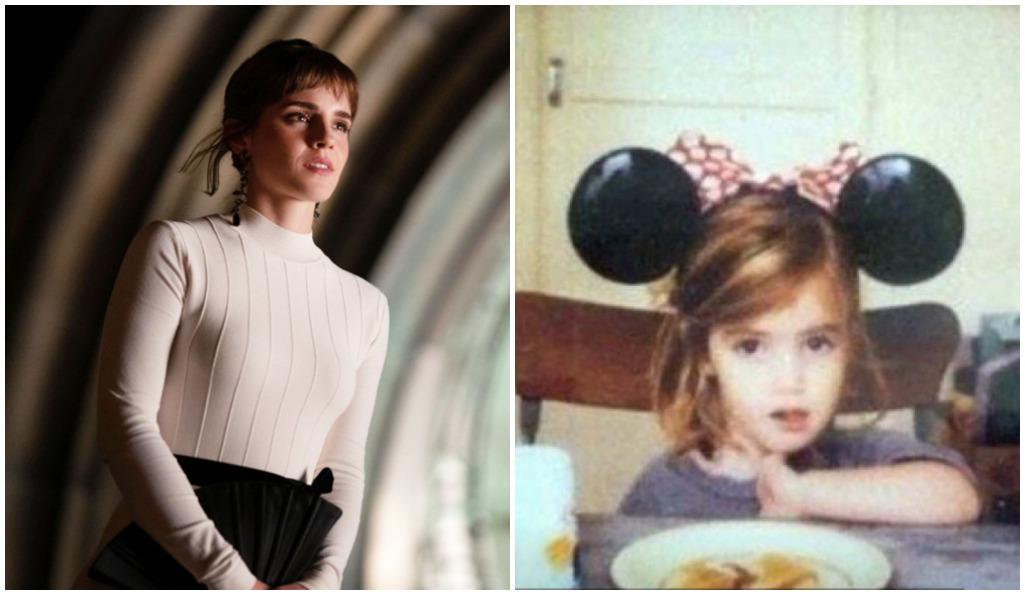 A imagem, que mostra Emma Roberts criança utilizando as orelhas do Mickey, é mostrada em cena enquanto Watson fala da infância e de como era fã da história criada por J.K. Rowling. O erro, claro, não passou despercebido.