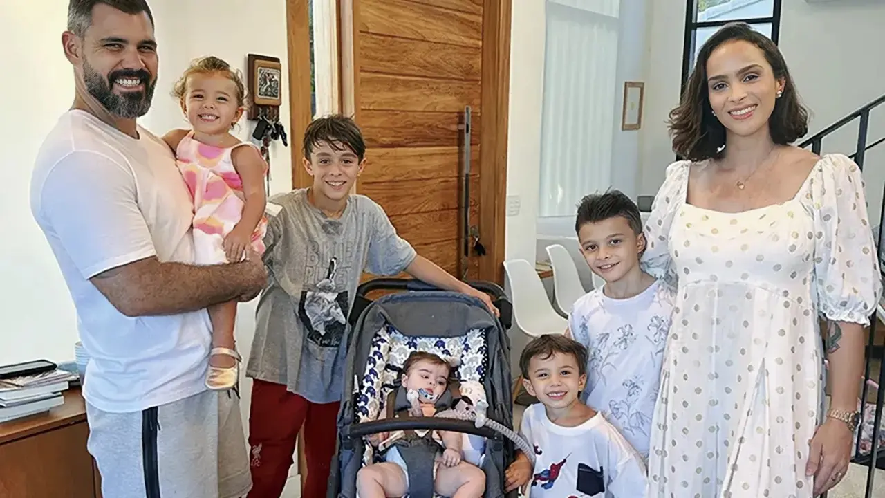 Esposa de Juliano Cazarré desabafa sobre ter filha caçula na UTI e gravidez: 'cansaço extremo'
