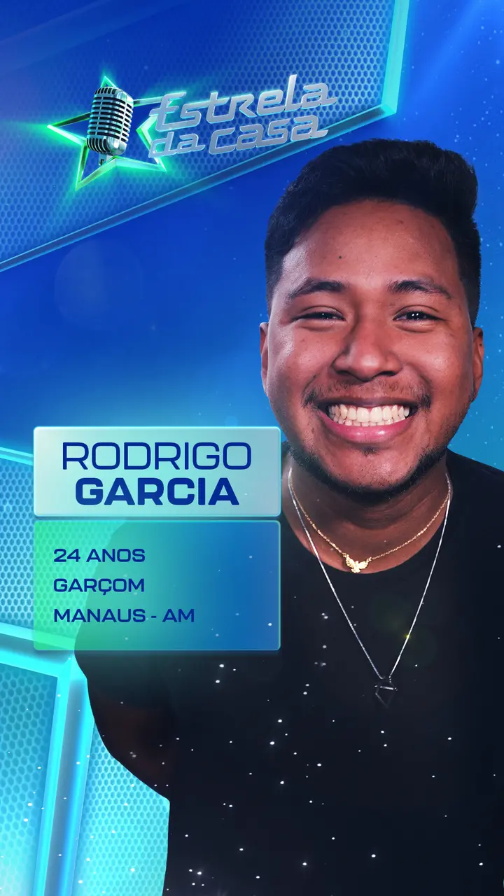 Morador de Manaus, no Amazonas, Rodrigo é apaixonado por piseiro, toca ukulelê e violão e também é compositor. O participante coleciona experiências profissionais como maitre sommelier, garçom, distribuidor de panfletos, pintor, assistente de pedreiro e também ajuda sua mãe entregando quentinhas. Hoje, mantém inspirações em ritmos como forró, swingueira e axé.