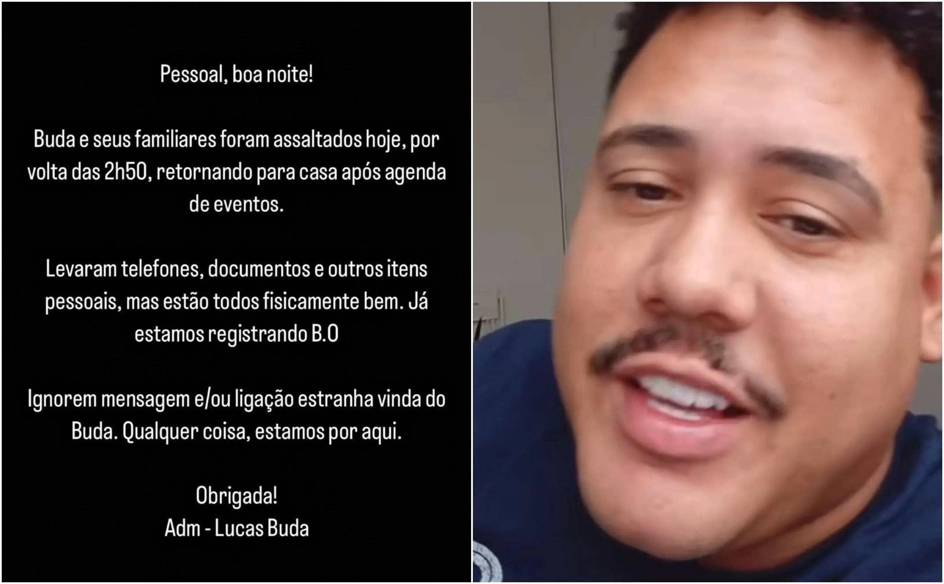 “Buda e seus familiares foram assaltados hoje, por volta das 2h50, retornando para casa após agenda de eventos. Levaram telefones, documentos e outros itens pessoais, mas estão todos fisicamente bem”, dizia a nota.