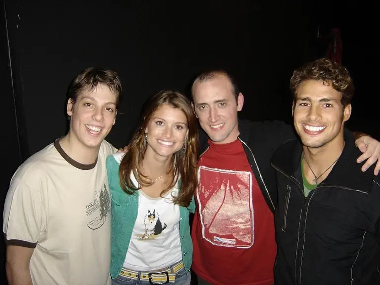 Na segunda foto, Fábio e Paulo estão acompanhados das atrizes Luana Piovani e Malu Valle - que era diretora da peça.