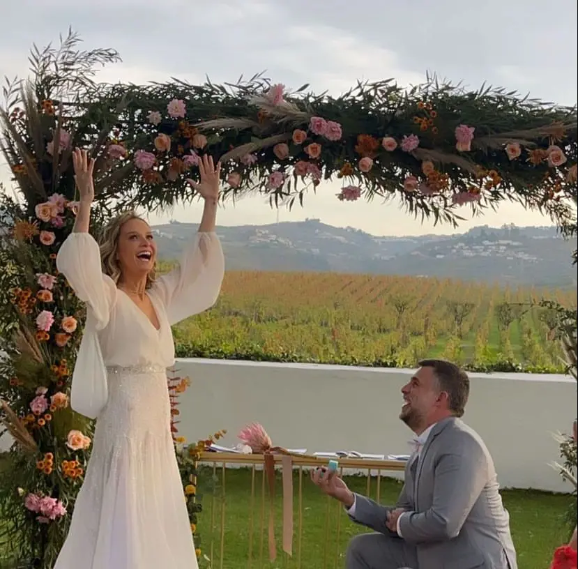O casamento foi realizado em uma vinícola da cidade de Lamego e reuniu diversos famosos, como Sandy, Fernanda Paes Leme, Paulo Vilhena, Leo Fuchs e Susana Werner.