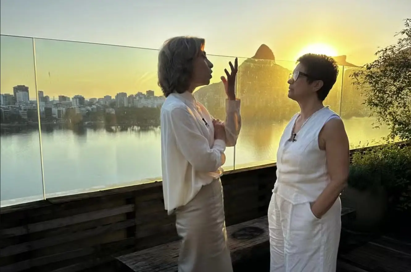 Fernanda Torres grava 'Globo Repórter' em casa no Rio de Janeiro com Sandra Annenberg