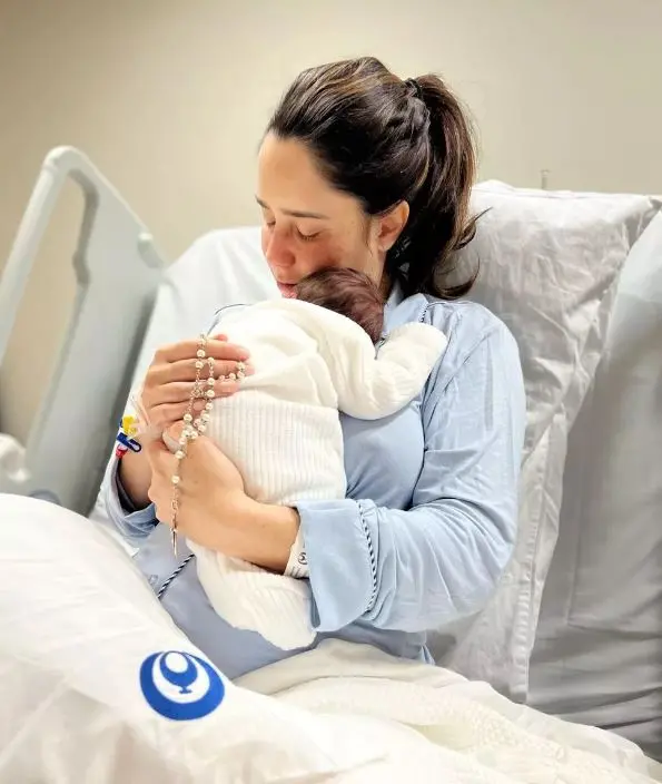 Na imagem compartilhada nas redes, é possível ver Fernanda com os olhos fechados, segurando a criança, com um terço em uma das mãos. O bebê veste uma roupa branca e tem os cabelos castanhos.