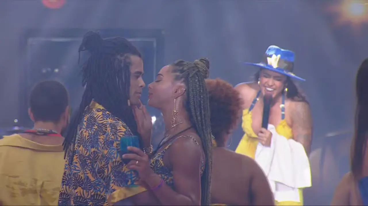 Quase no fim da festa, a artista pediu um beijo entre Diogo e Aline, que já haviam feito isso ao som de "Cobaia". "Só que agora eu quero ver o beijo ao vivo, viu? Não vou falar nada. Entendedores entenderão", disse Lauana. Os dois já estavam próximos e atenderam ao pedido.