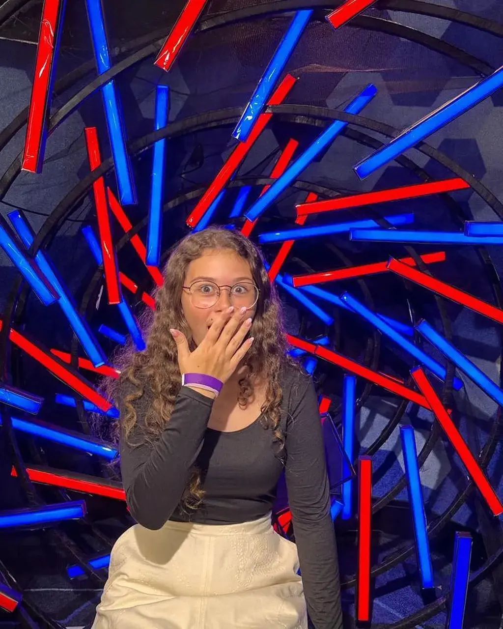 A jovem conheceu o confessionário, atendeu o Big Fone e postou fotos do passeio no Instagram, onde é seguida por 67 mil pessoas.