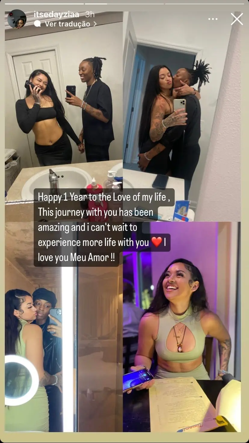 Além de uma montagem com fotos das duas, Daze se declarou: “Feliz um ano, amor da minha vida. Essa jornada com você tem sido incrível e eu mal posso esperar para viver ainda mais com você. Te amo, meu amor”, escreveu.