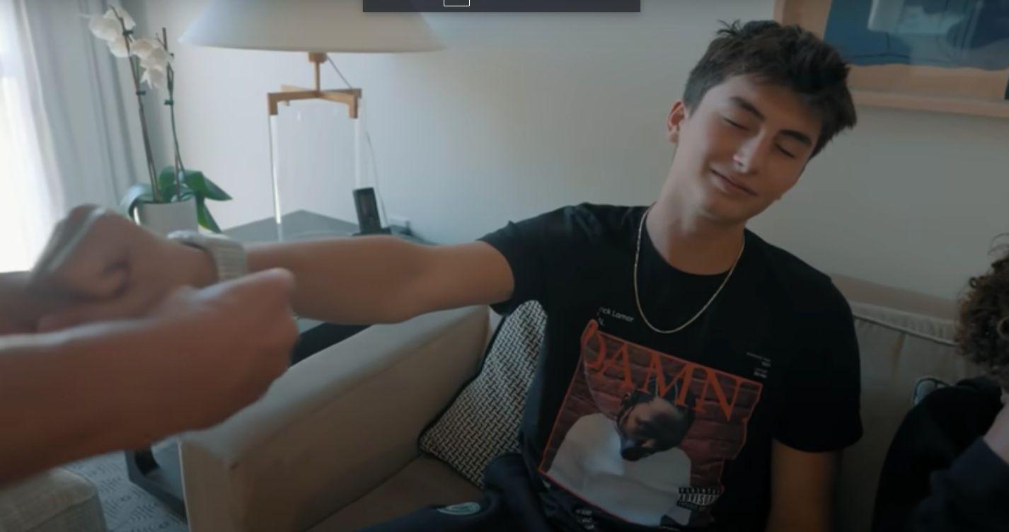 O jovem chega para visitar o pai, e o ex de Gisele pede para ele fechar os olhos e estender o braço. Na sequência, Brady tira do bolso o relógio cravejado de diamantes e coloca no pulso do Benjamin, que vibra com o presente.