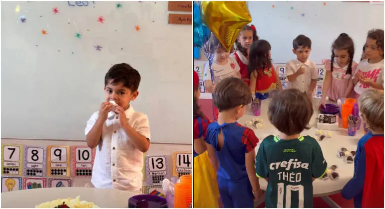 Em um vídeo compartilhado por João, Léo aparece rodeado dos coleguinhas enquanto cantam a versão de "parabéns para você" em inglês e, em seguida, em português.