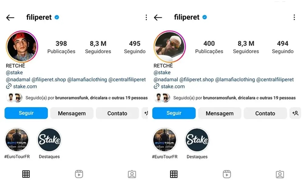 Filipe Ret, que apostou R$ 100 mil na vitória de MC Guimê no BBB 23 e usava uma foto do rapper em seu perfil no Instagram, apagou a mídia e trocou por um retrato próprio, nesta quinta-feira (16), após polêmicas de assédio.