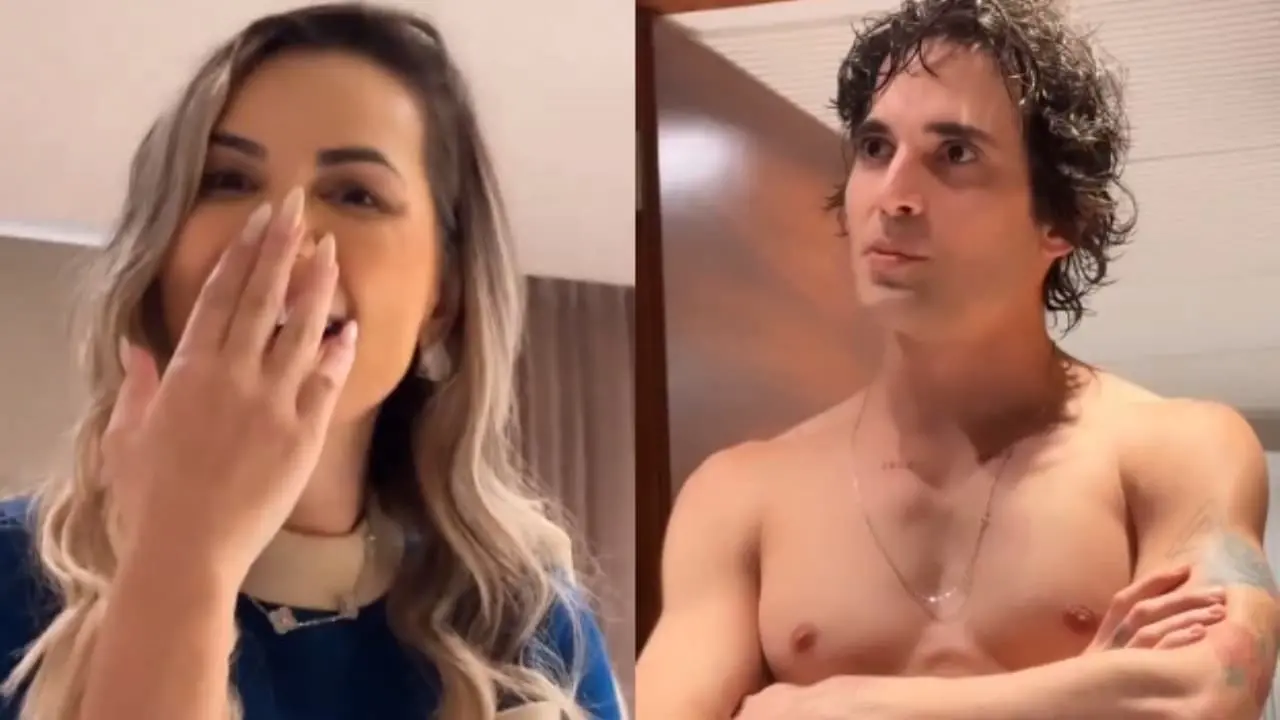 "Agora eu vou ter que falar, cara. Nossa primeira viagem juntos e essa po**a dessa regata branca de novo?", disse Deolane. "Mas, meu amor, coloquei só para você", respondeu ele, entrando na brincadeira. "Mas eu não queria", finalizou ela.