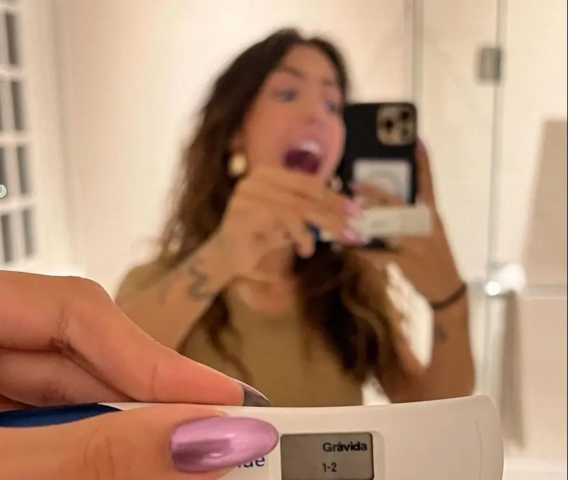 No carrossel de fotos publicadas, a influenciadora, que vive um relacionamento de altos e baixos com Saulo Poncio, mostrou o momento em que descobriu a gravidez e alguns dos episódios de sangramento.