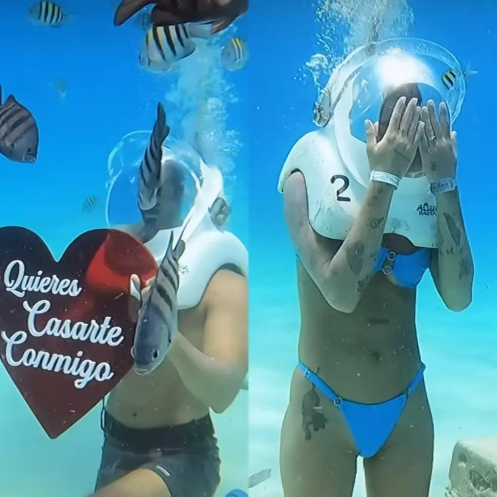 Gabi Prado é pedida em casamento no fundo do mar e se emociona