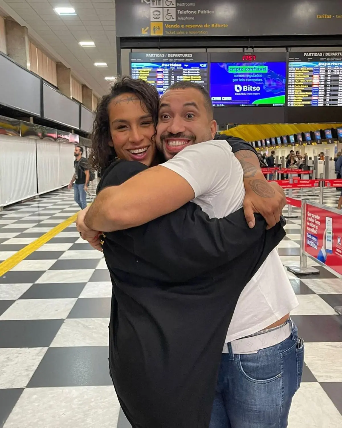 Gil do Vigor e Linn da Quebrada se encontraram em um aeroporto do Rio de Janeiro nesta quinta-feira (21), e compartilharam a alegria de terem se conhecido. "A amizade de milhões acontecendo", publicou Lina.