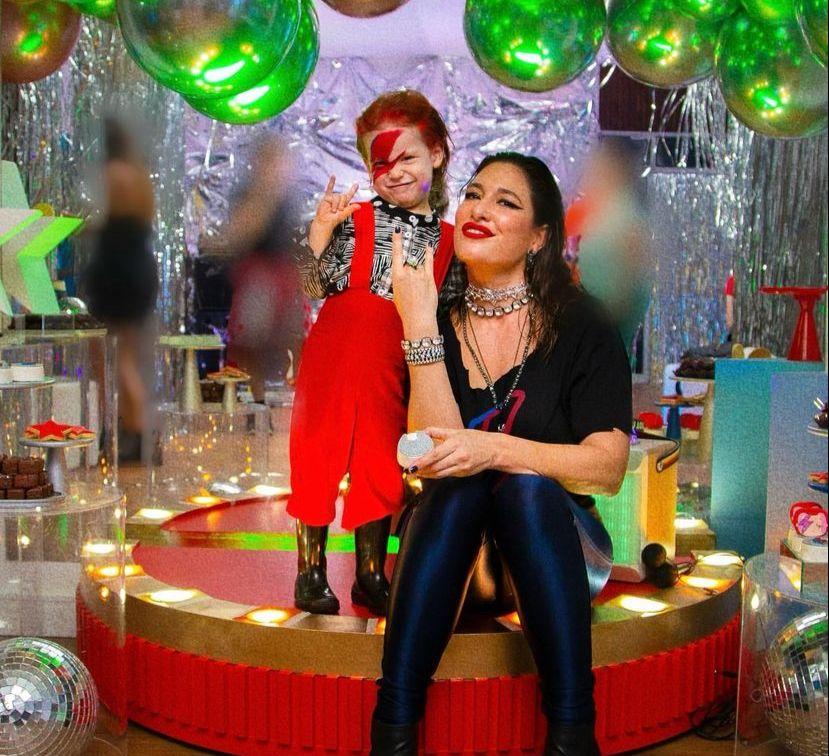 As imagens encantaram os seguidores da atriz. Isso porque a criança escolheu um dos maiores astros do rock, David Bowie, para se fantasiar e curtir a festa.