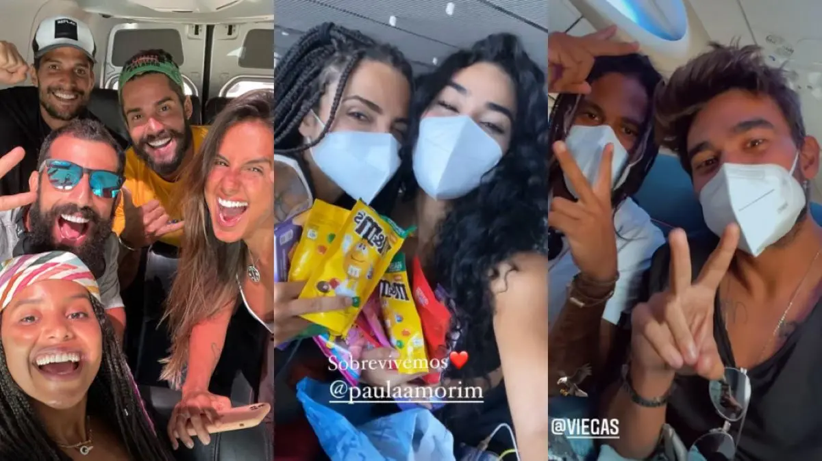 Iris Stefanelli, Paula Amorim, GuilhermeNapolitano, Elana Valenaria e Lucas Chumbo, da equipe Carcará, postaram registros no aeroporto durante o retorno para suas cidades.