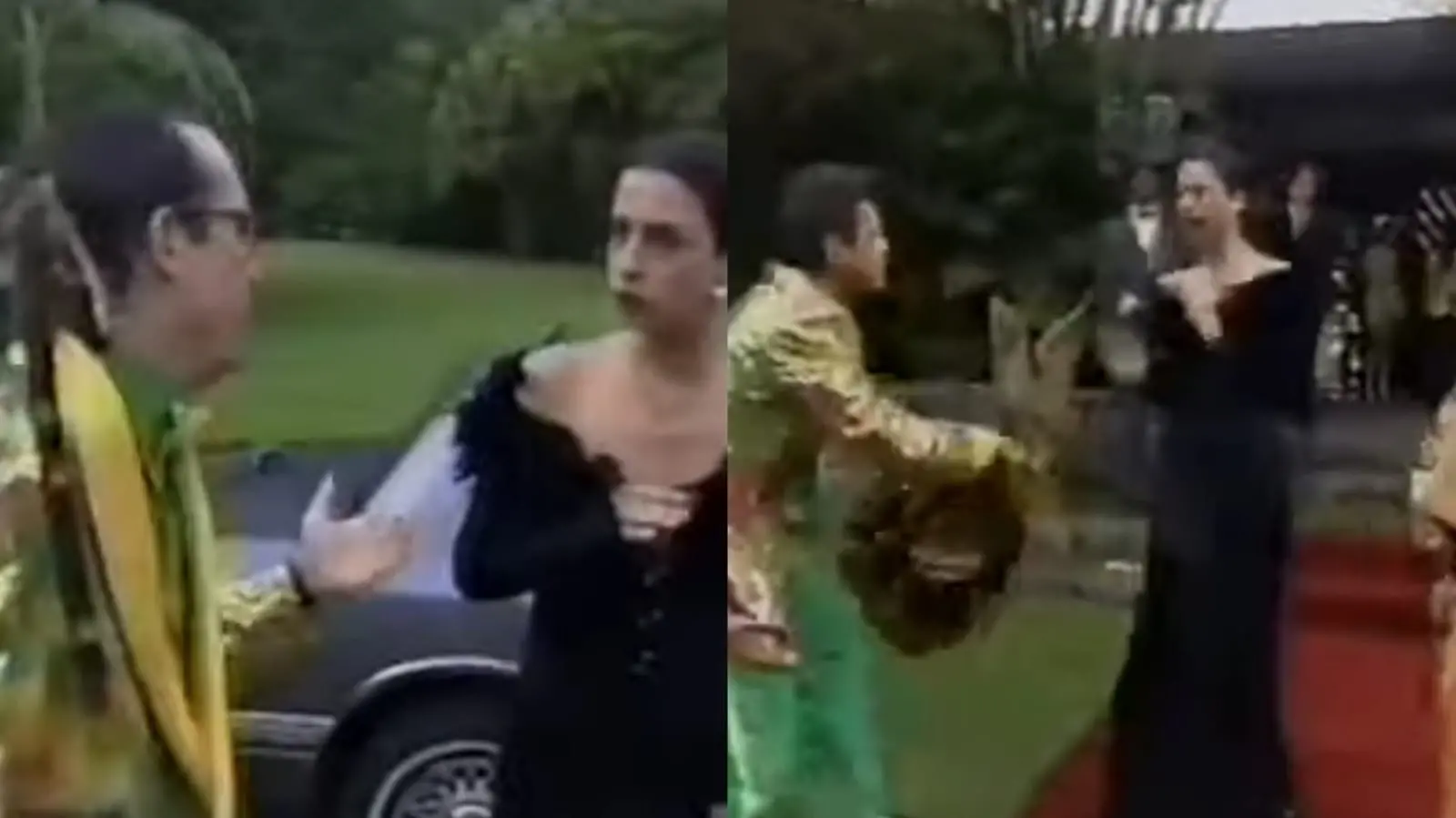 Em seguida, ela deixa o local sem aprofundar conversa com os comediantes.
