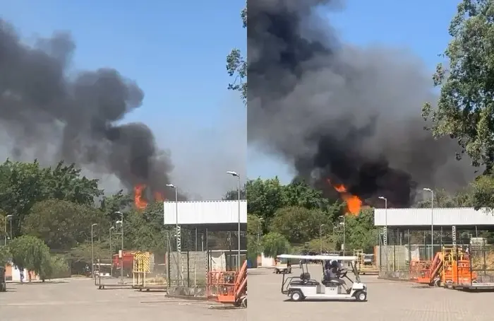O Centro de Operações da Prefeitura do Rio de Janeiro publicou um vídeo do incêndio em um galpão no Projac e alertou motoristas sobre a fumaça.