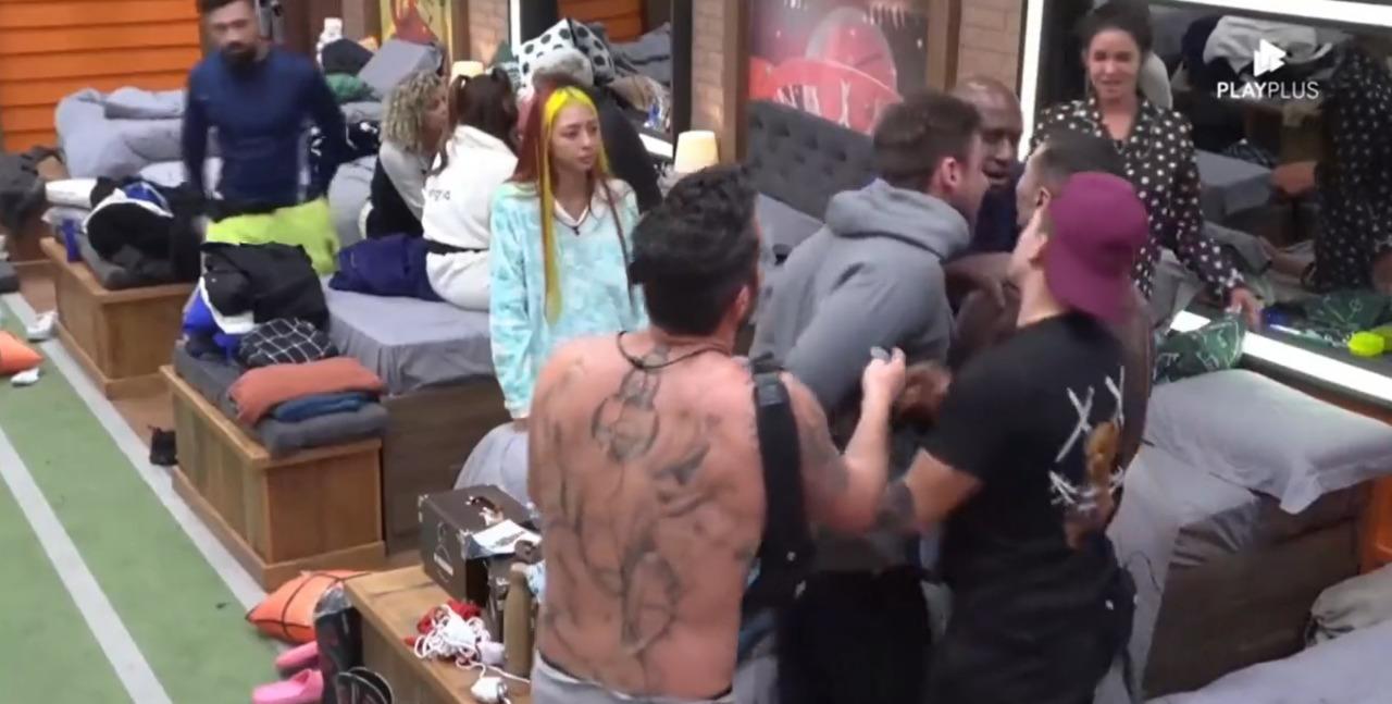 Thomaz Costa tentou separá-los mas foi empurrado pelo carioca, fazendo o ex-namorado da atriz Larissa Manoela cair deitado em uma das camas. Iran Malfitano também tentou acalmar os ânimos do cinematografista e acabou levando um empurrão.