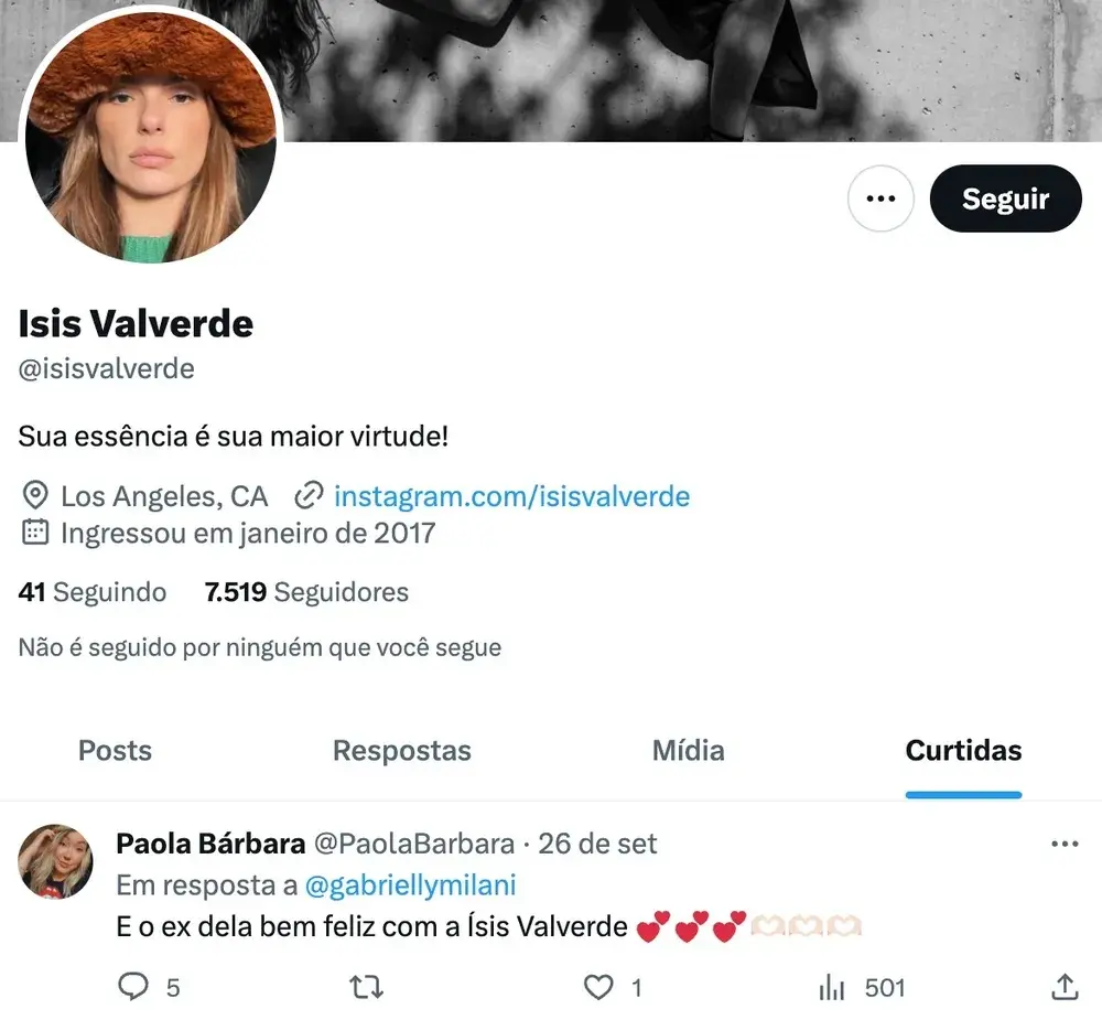 Com a grande repercussão, Isis deixou de curtir o tweet.