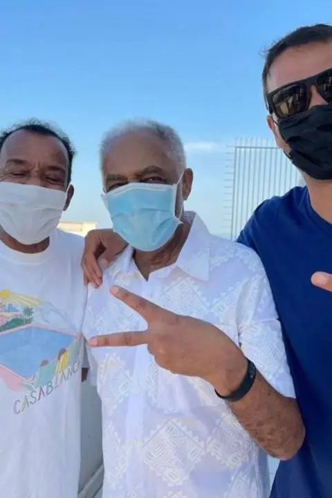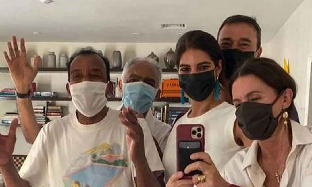 "Pois neste mundo maravilhoso. Vive mal quem não vive de amor. O domingo de Gil e Flora foi ainda com máscaras e entre amigos, com os compadres, Andréia Sadi e André Rizek, e o irmão de uma vida, Jorge Ben Jor", dizia a legenda da foto publicada no perfil do Instagram de Gilberto Gil.
