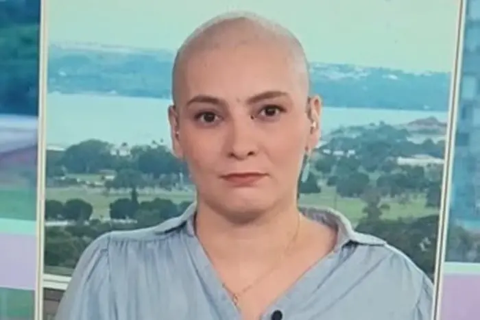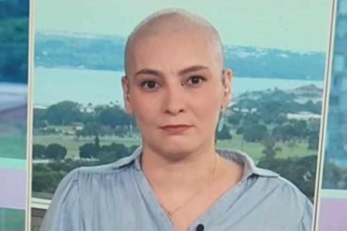 De cabeça raspada em razão da quimioterapia, Larissa Rodrigues falou sobre a importância de aparecer dessa forma no ar