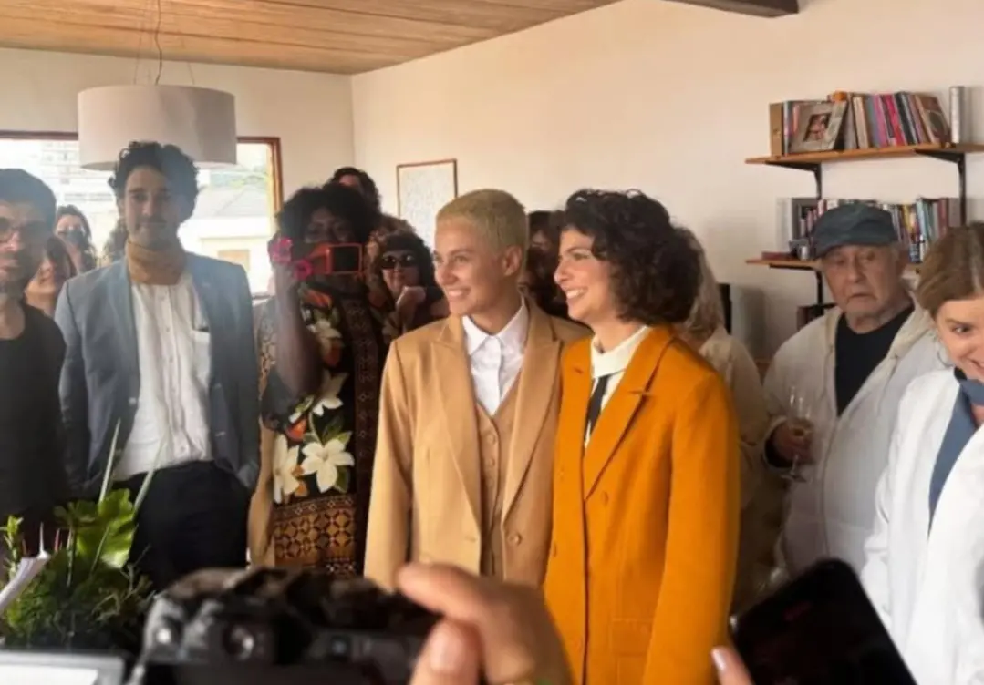 Júlia, de 32, e Maria, de 37 anos, estão juntas desde 2022, e receberam amigos e familiares próximos para celebrarem a união, e emocionaram a todos. "Vou estar com essa pessoa porque ela sempre me respeitou, sempre me amou - é uma semente que nós semeamos. […] É felicidade por estar uma na mão da outra", disseram num simples discurso.