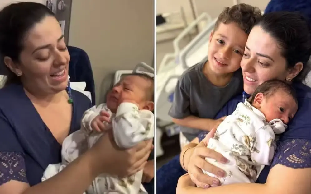 Juliana Perdomo se emociona ao conhecer filho após complicações no parto: 'Deus me permitiu voltar'