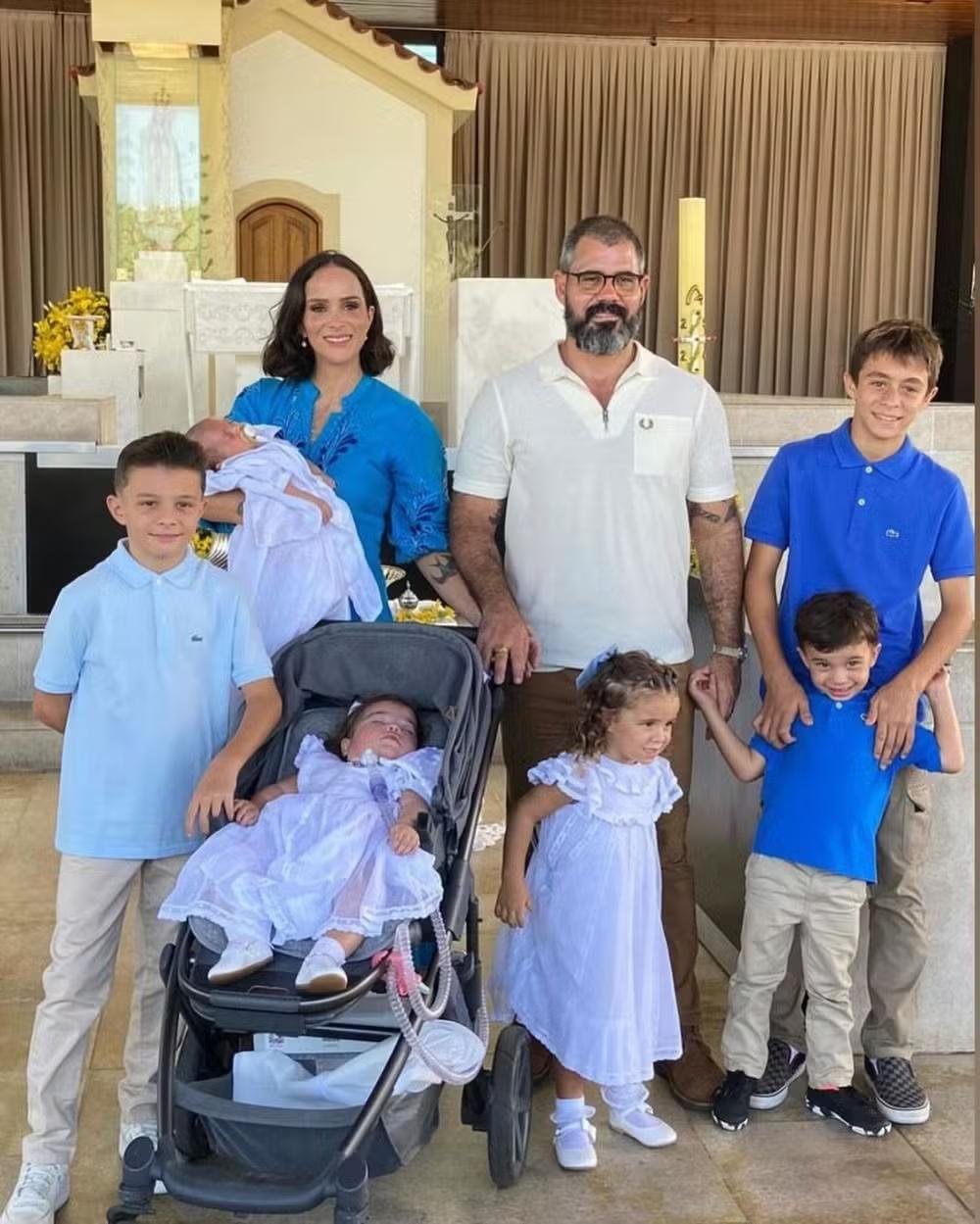 Juliano Cazarré compartilha foto com os seis filhos durante batizado do caçula