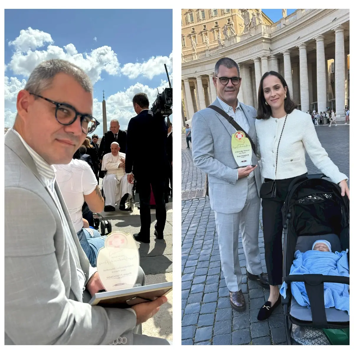 A convite do Padre Marlon, Juliano e Letícia Cazzaré puderam ver de perto o Papa Francisco, nesta quarta-feira (22), na Itália. Pai de seis filhos, o casal estava há cinco anos sem viajar para o exterior.