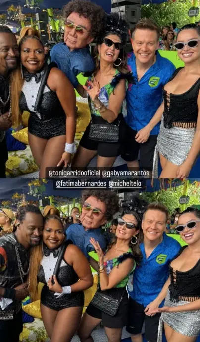 Para a folia, Juliette escolheu um cropped preto e uma saia metalizada. Fátima Bernardes também celebrou sua primeira ida ao bloco, ao lado do namorado, Túlio Gadelha, em seu Instagram.