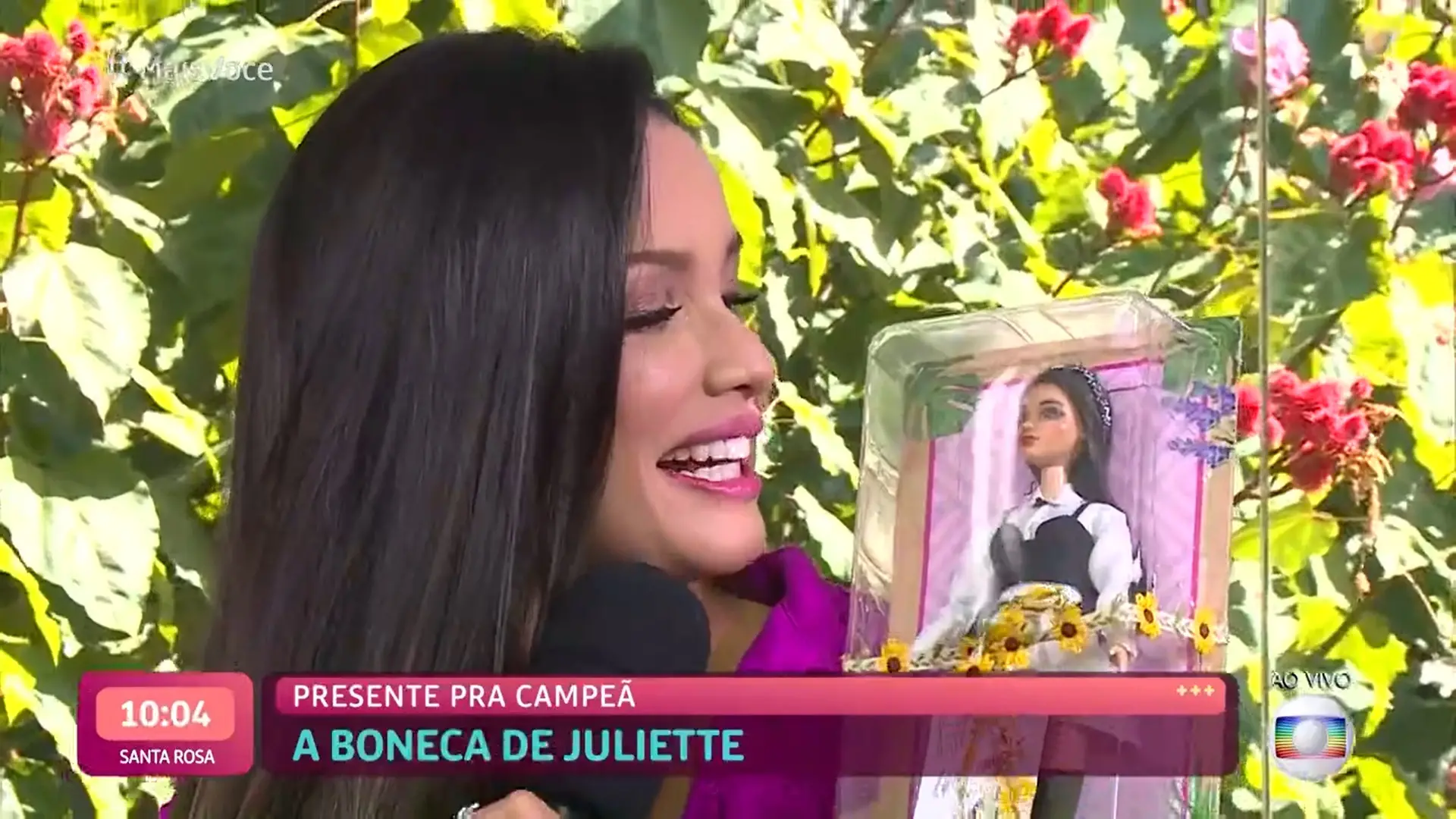 No bate-papo, em uma caixa estilizada, a produção do "Mais Você" entregou a Juliette uma boneca feita pelo estilista e artista plástico Vânio Tomé, de Criciúma (SC). "Eu estou sem palavras para comentar", disse a vencedora do BBB 21.