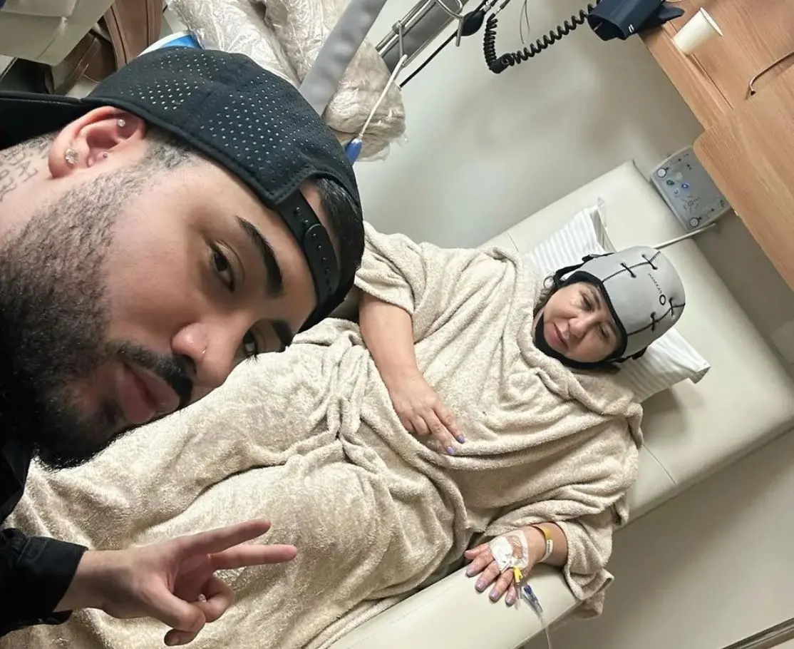 Kevinho mostra mãe na primeira sessão de quimioterapia após retirada de nódulo na mama
