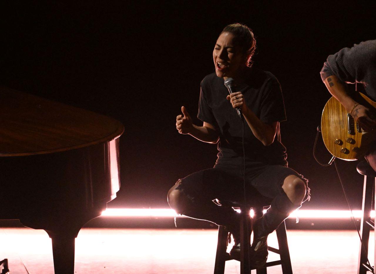 A cantora Lady Gaga fez uma apresentação no Oscar 2023 "de cara limpa", usando apenas tênis, uma camiseta preta e um jeans rasgado. Ela cantou a música "Hold My Hand", indicada a Melhor Canção Original pela trilha sonora do filme "Top Gun: Maverick”.