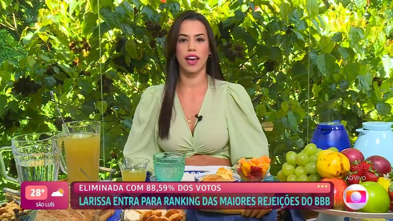 A influenciadora digital Larissa, eliminada do BBB 22 na terça-feira (1º), revelou que deu informações falsas para os brothers com o objetivo de movimentar o jogo. A ex-BBB deu entrevista no "Mais Você" para Fabrício Battaglini e Talitha Morete, na manhã de quarta-feira (2).