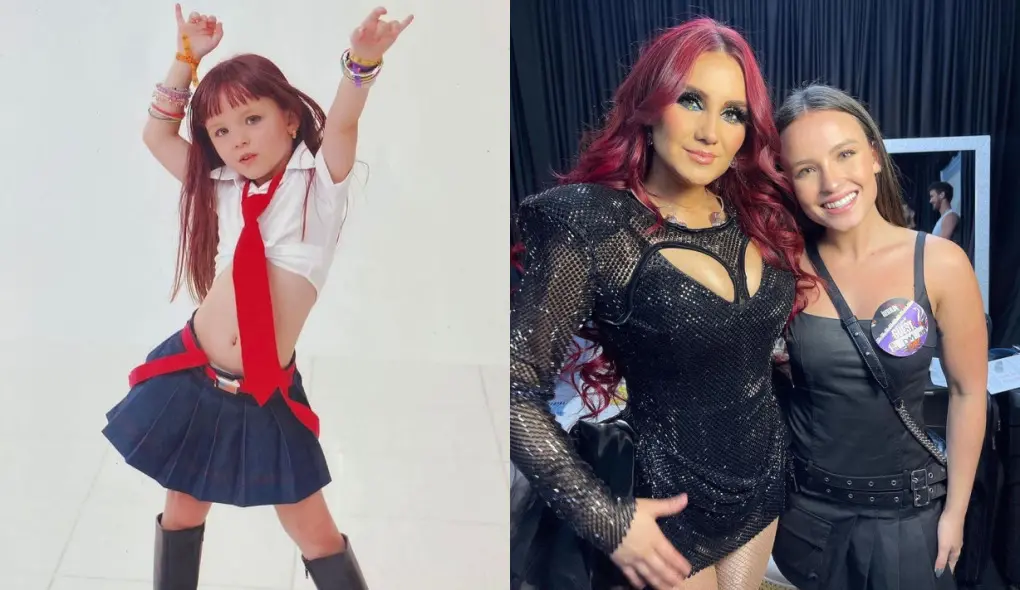 Larissa Manoela conhece Dulce Maria durante primeiro show de RBD no Brasil