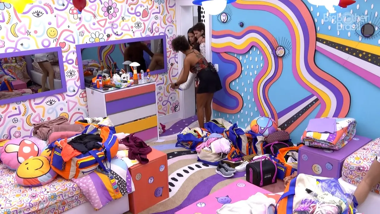 Após ter o pé imobilizado, Larissa foi levada por Lucas para o quarto grunge. Eslovênia e Jessilane auxiliaram a influenciadora digital."Obrigado, gente. Estou bem", contou a sister.