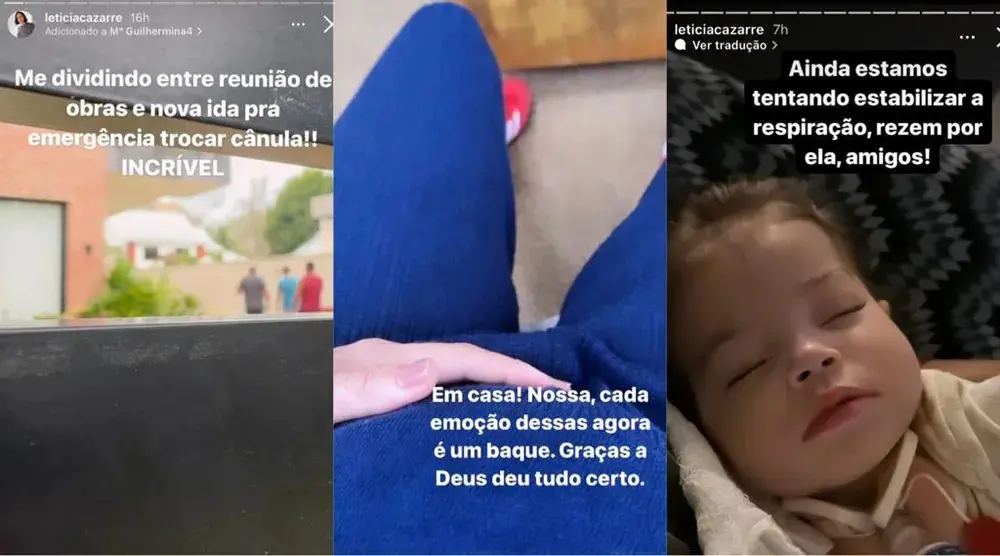 Ainda em postagens, ela pediu orações pela melhora da filha: "Ainda estamos tentando estabilizar a respiração. Rezem por ela, amigos".