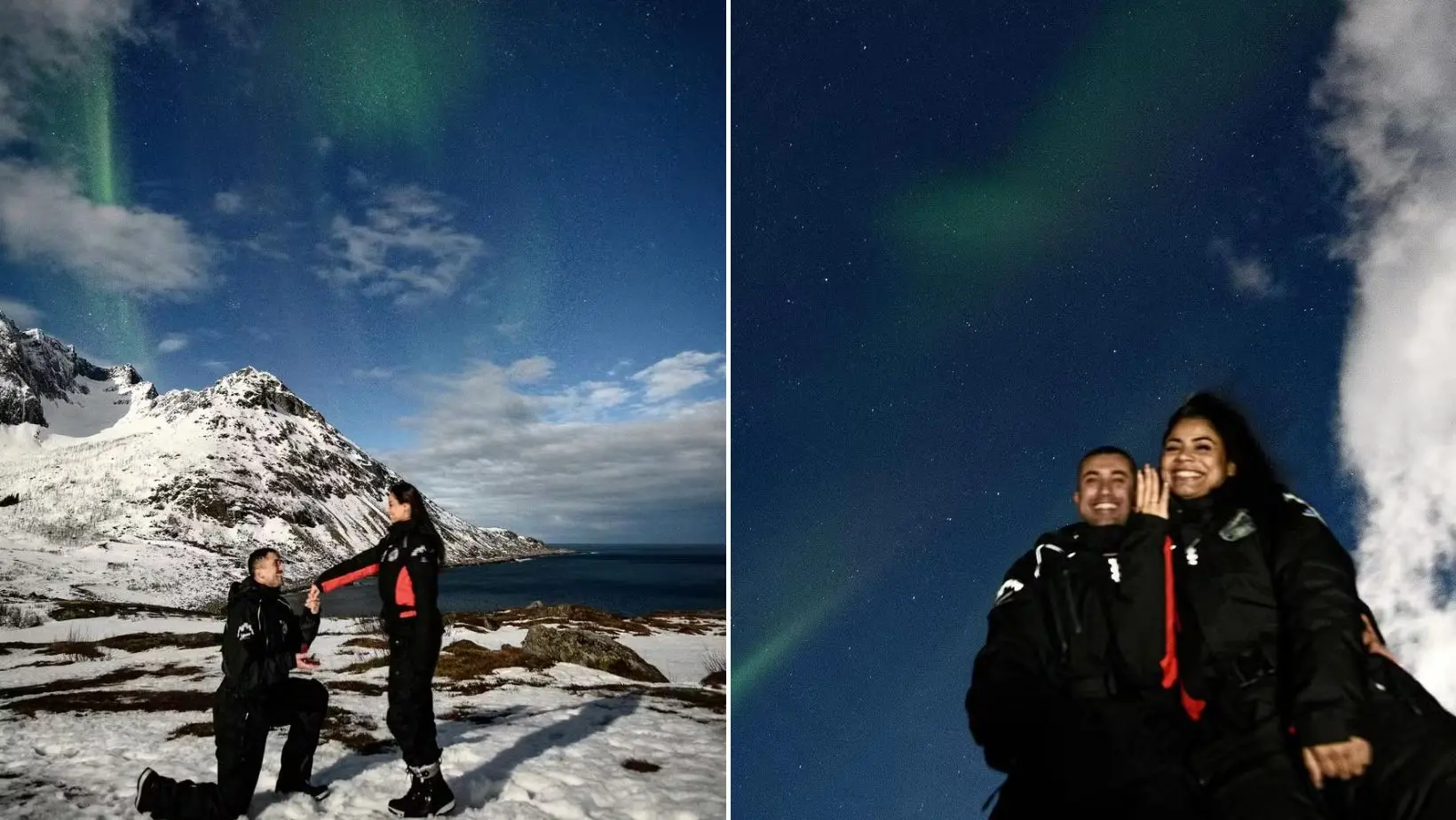 O cenário do pedido, na aurora boreal, também foi celebrado. "Como um amante da natureza digo que não poderíamos ter uma benção maior do que a noite de ontem. Cercado por montanhas, mar ao nosso lado e aurora boreal dançando no céu. Deus é bom o tempo todo!", finalizou.