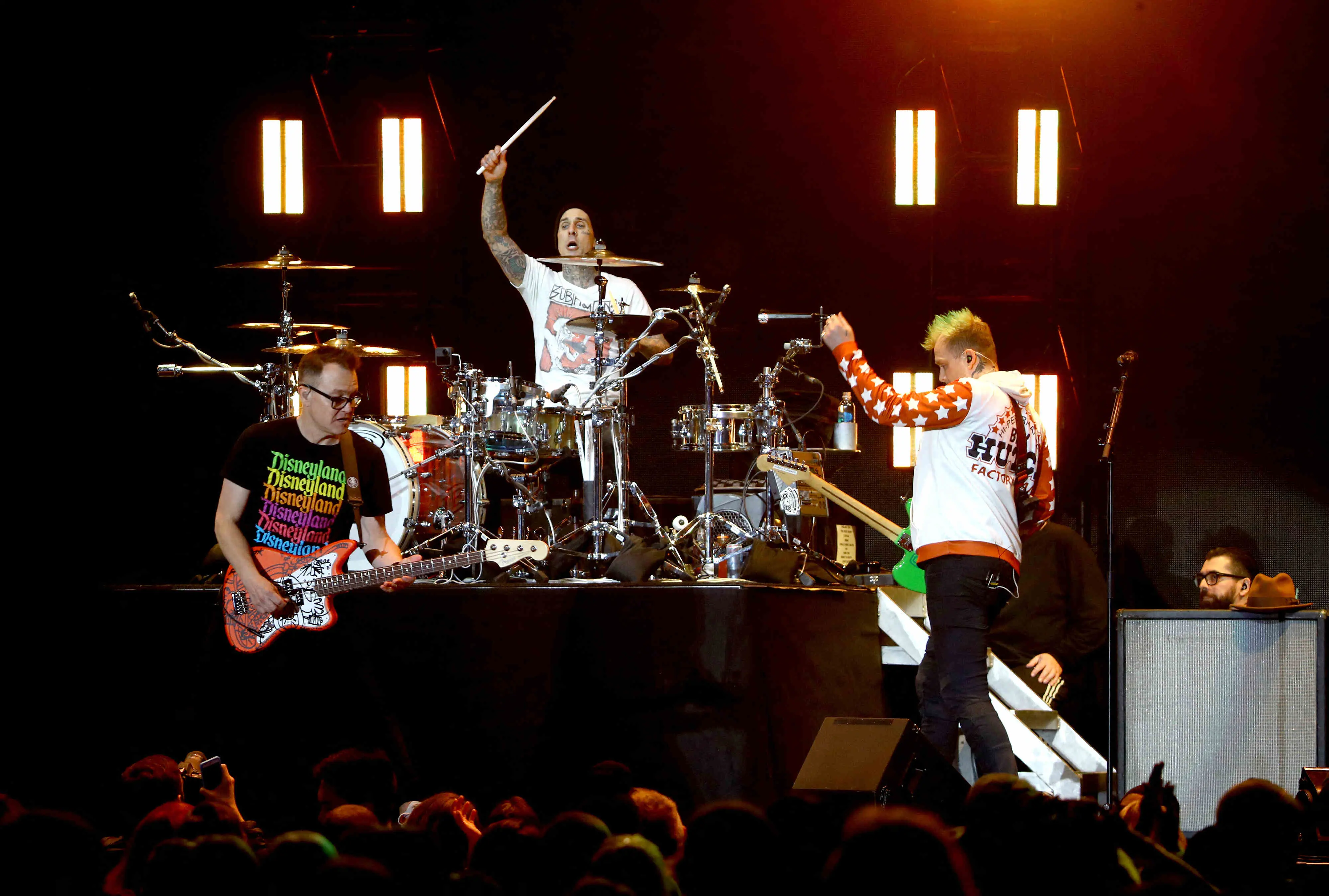 Em momento festivo, o trio de pop punk Blink 182 vem ao Brasil com a formação original (Mark Hoppus, Travis Barker e Tom DeLonge). Eles comemoram 30 anos de carreira e hits como "All the Small Things", "I Miss You", "Adam's Song" e "What's My Age Again?".