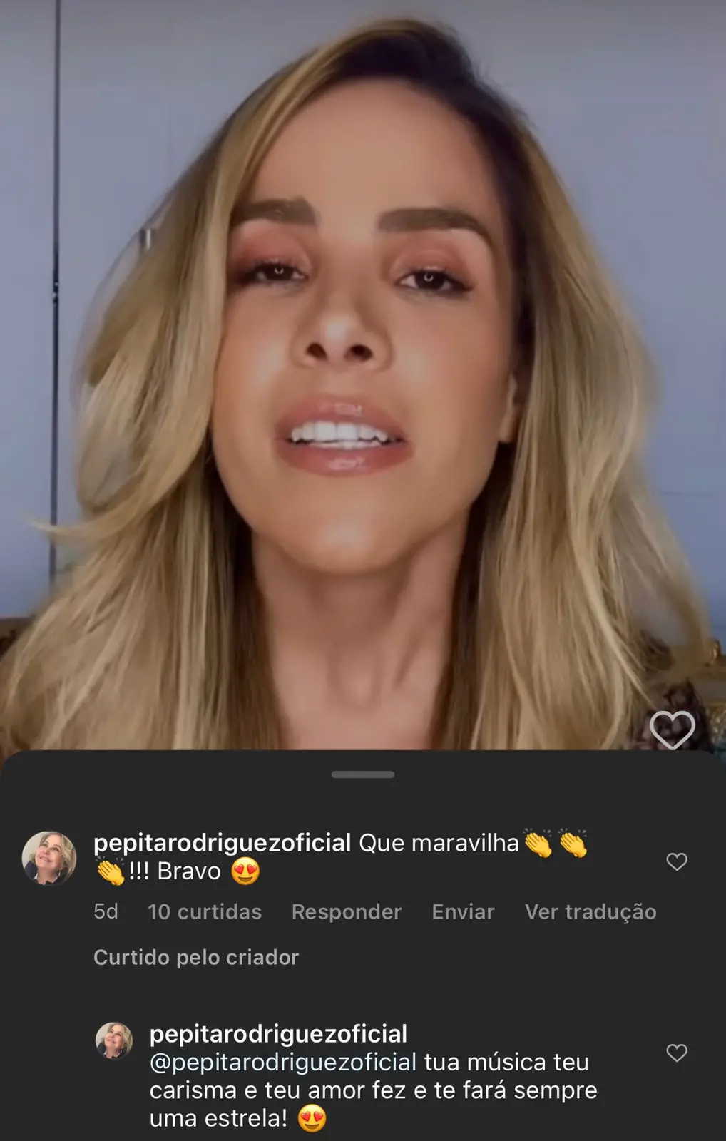 Na postagem de um fã-clube de Wanessa, em que a nora canta a música "Eu nasci só para você", Pepita escreveu: