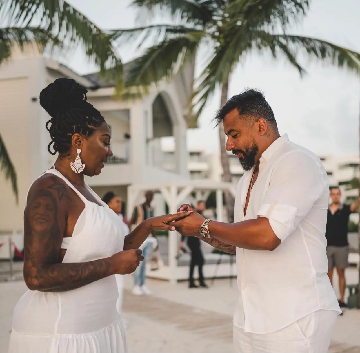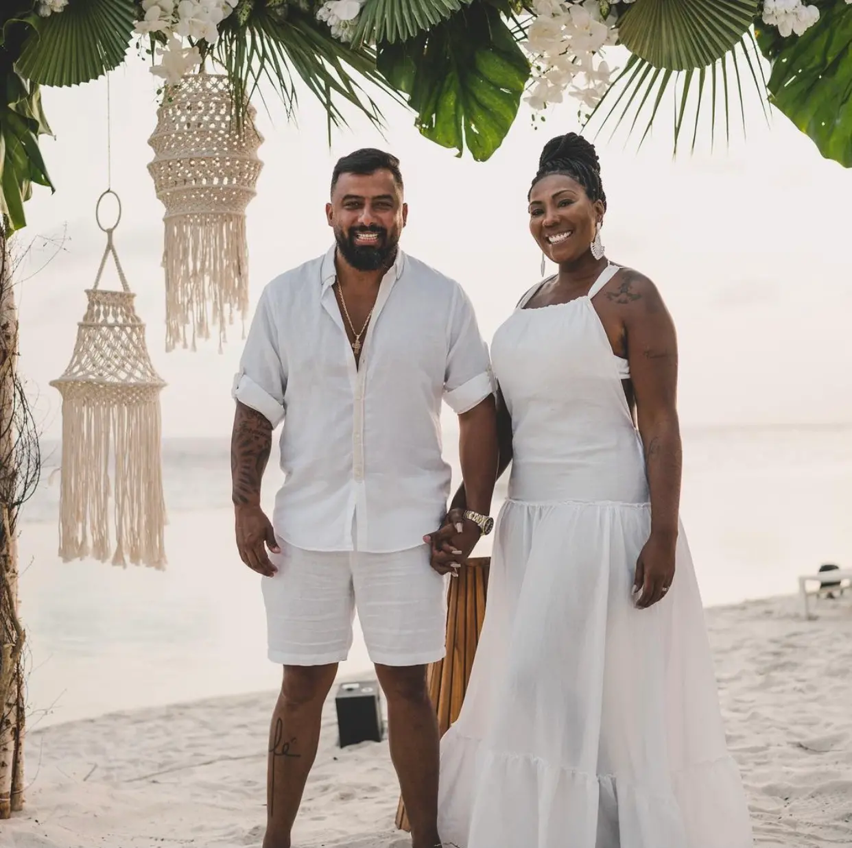A cerimônia ocorreu junto a renovação de votos de Ludmilla e Brunna Golçalves, que também aproveitam na ilha paradisíaca.