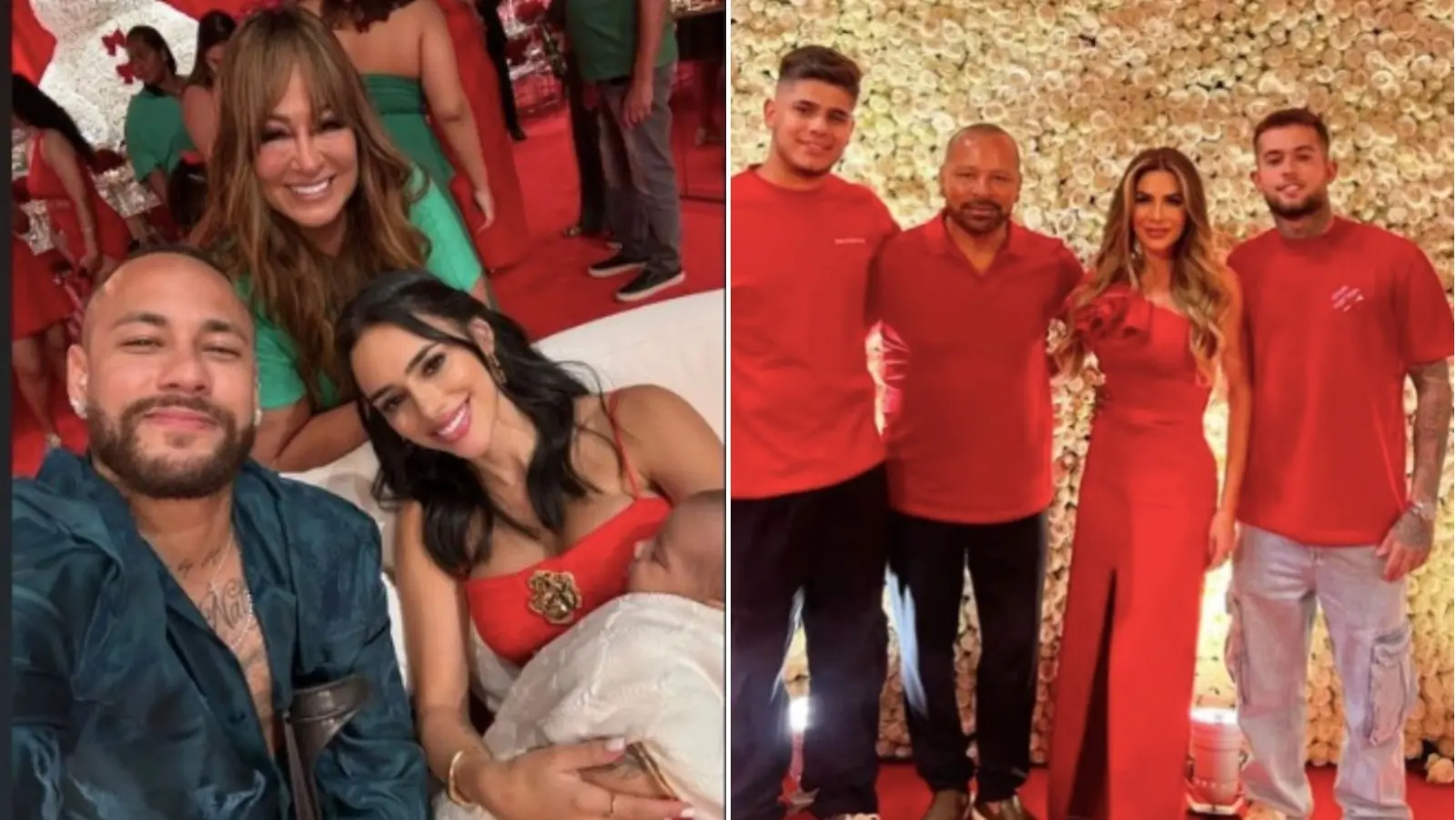 Neymar Pai também esteve na mesma festa que a ex-companheira, acompanhado da atual namorada, Mariane Bernardi, e os dois filhos dela. Foi a primeira vez que Neymar conseguiu reunir toda a família em clima de harmonia.