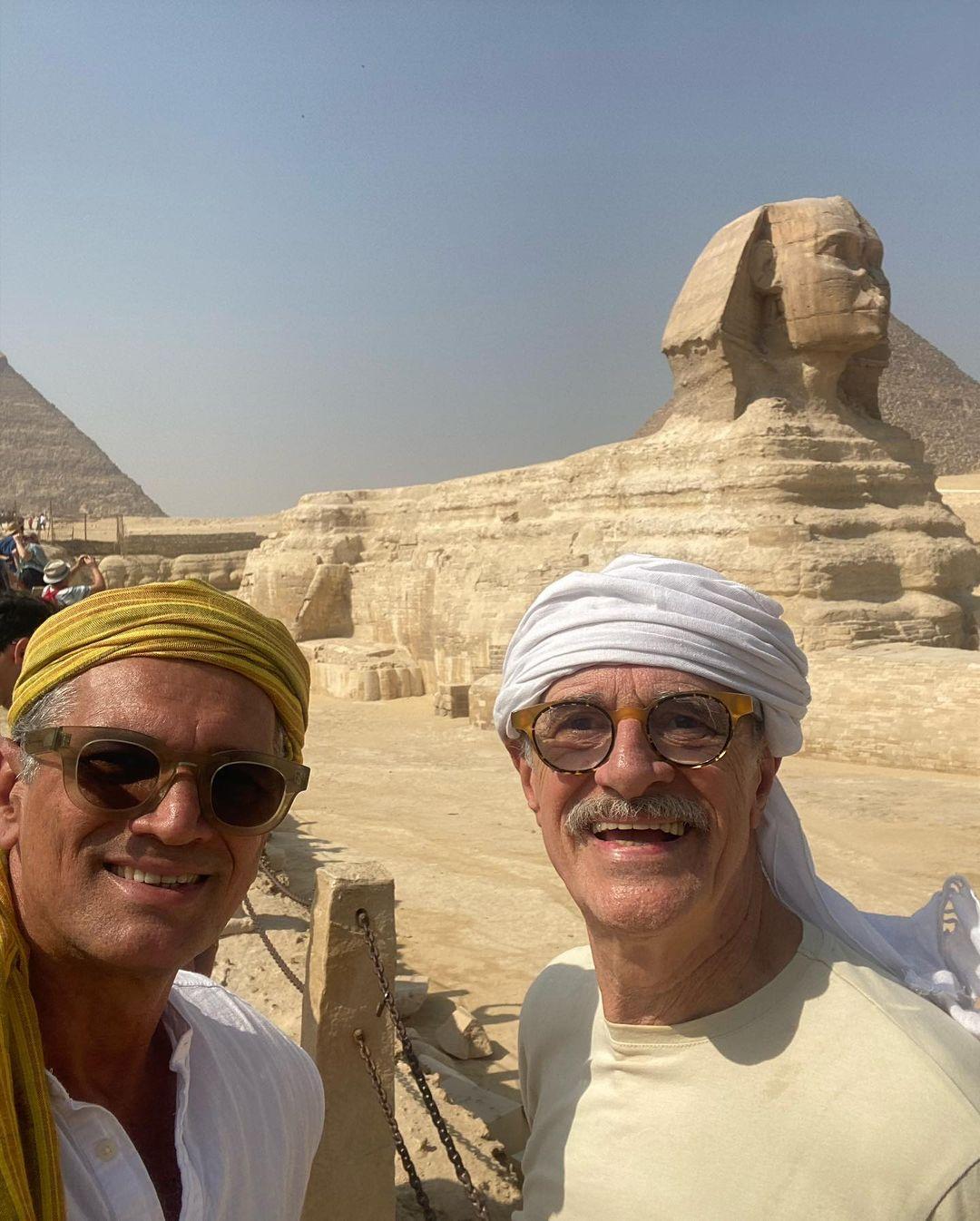 No ar na novela “Elas por Elas”, o ator Marcos Caruso, de 71 anos, tirou alguns dias de férias para curtir o Egito ao lado do marido, o técnico de enfermagem Marcos Paiva, 56.