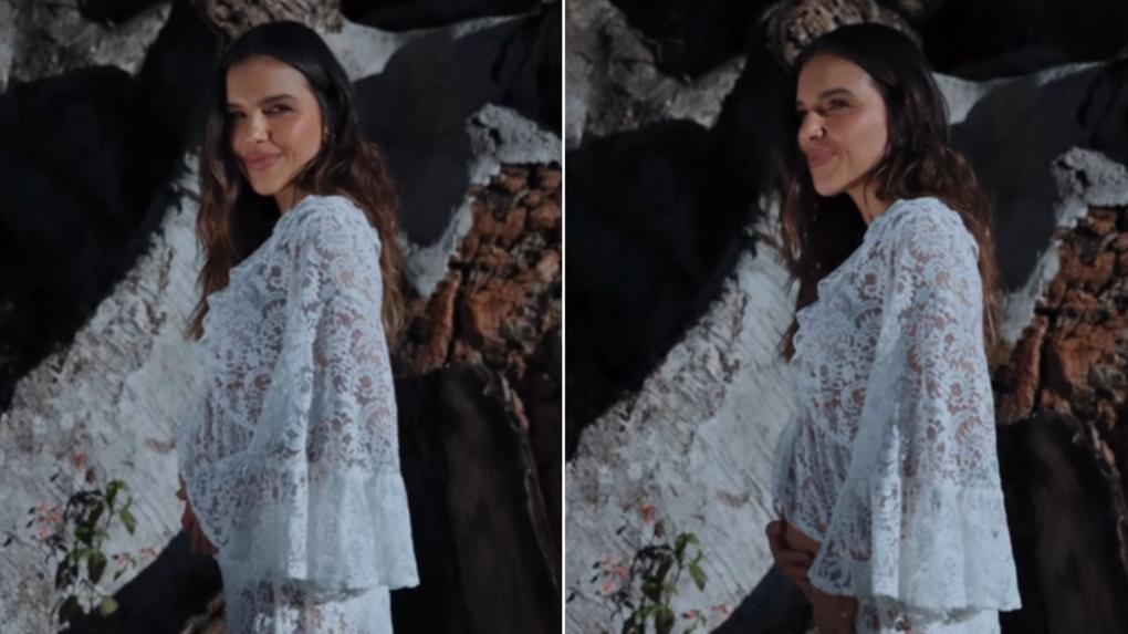 Os dois compartilharam um vídeo da atriz acariciando a barriga, ao som da música gospel 'Ninguém Explica Deus'.